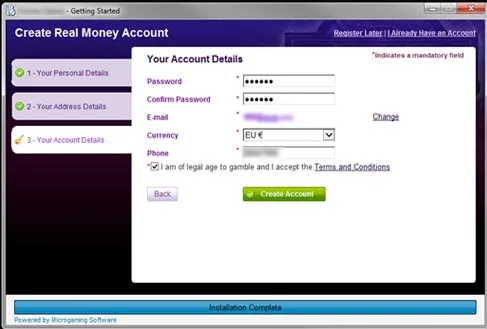 When you begin registration at the casino you will be asked to choose a password and to enter your name and email address. Please take care entering these details as they will be used for verification and as a mailing address for your winning. Also remember that the password is case sensitive.